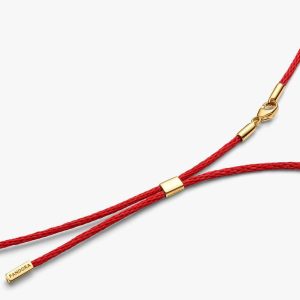 brand Talisman Red Recycled Polyester Cord Necklace | Gold plated