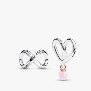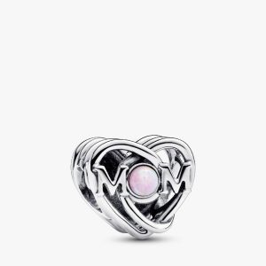 Mom Opalescent Heart Dangle Charm Bracelet Set | Sterling silver