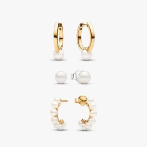 Treated Freshwater Cultured Pearl Earring Set | Gold plated